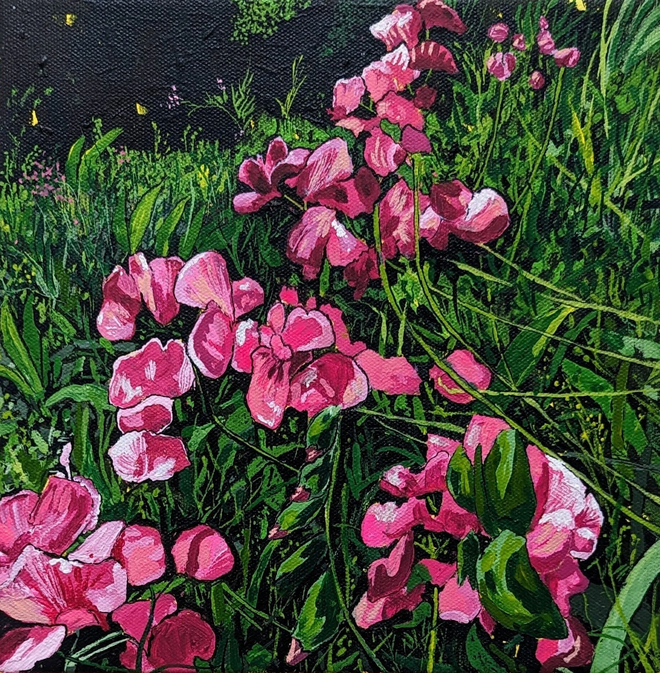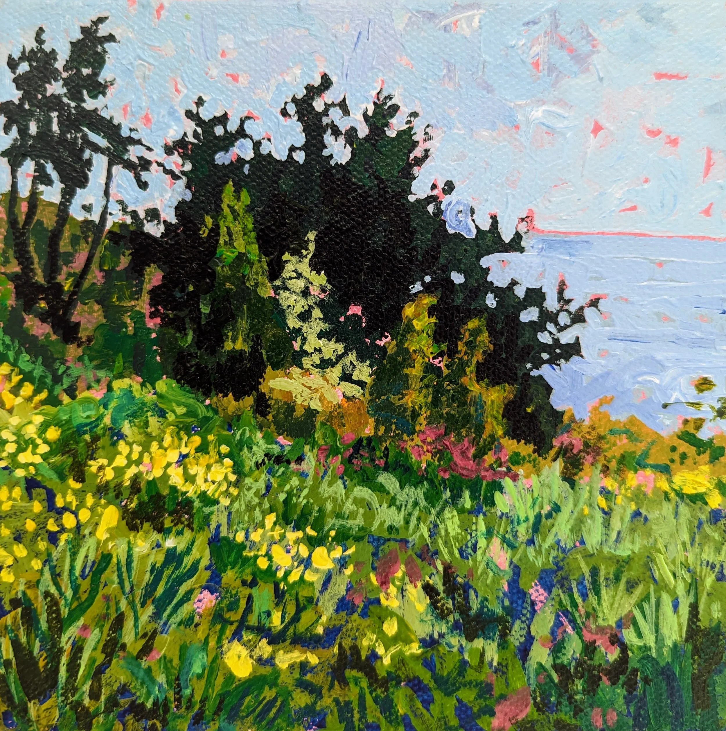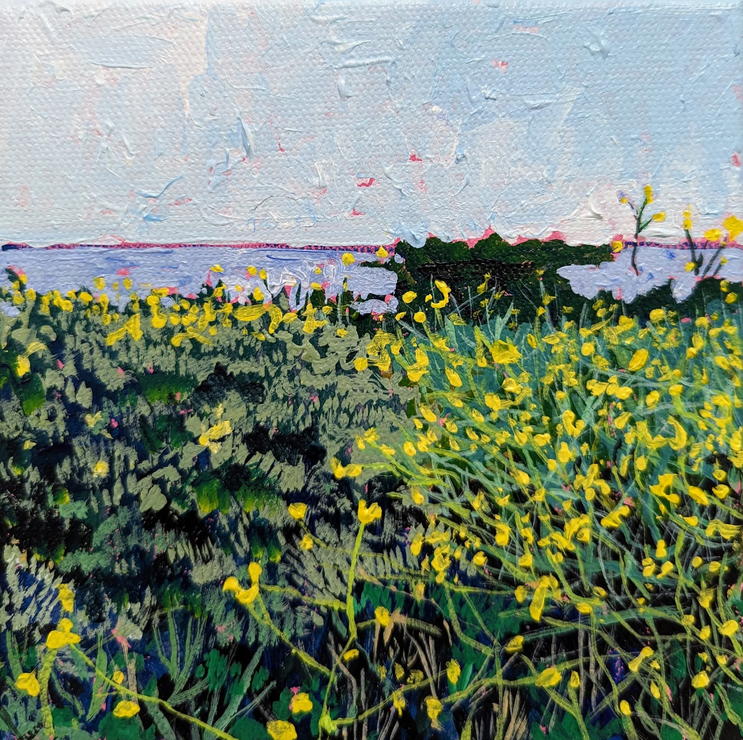 Beach Flowers Study - acrylic on canvas 6x6, inches